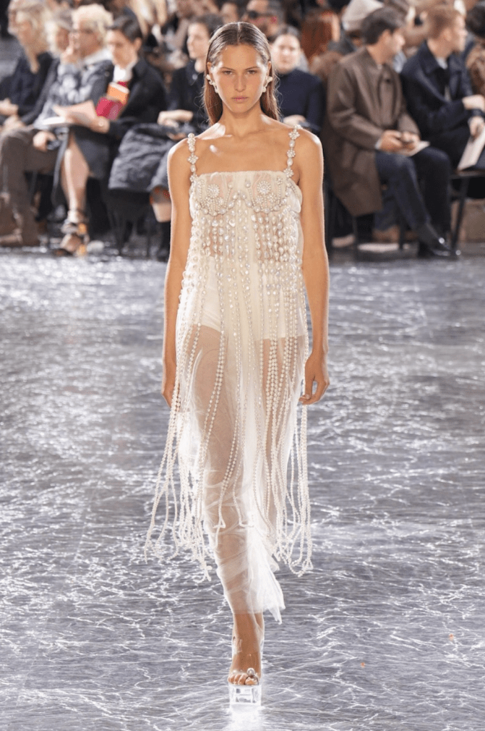 Guest designer Simone Rocha impressed everyone with this Spring 2024 collection. From the beading to the detailing to the silhouettes, this collection screamed beauty. One of my favourite guest looks was Kylie Jenner’s translucent dress and glass shoe combo.